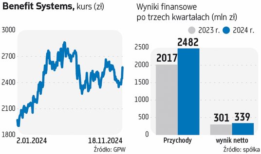 Nawet o blisko 9 proc. zwyżkowały walory Benefit Systems podczas pierwszej w tym tygodniu sesji. Impulsem do zakupów były zaprezentowane wyniki za III kwartał, prognozy poprawy wyników w przyszłym roku i publikacja strategii do 2027 r.