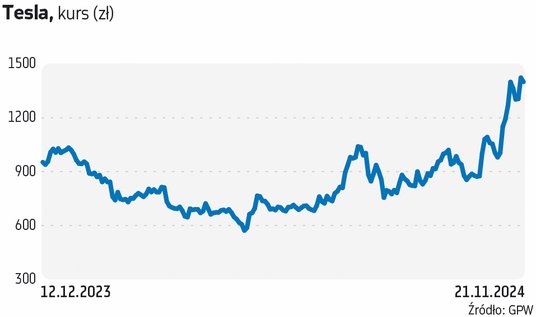 Zainteresowanie amerykańskimi spółkami wzrosło po wyborach Donalda Trumpa na prezydenta Stanów Zjednoczonych. Mocno odczuła to w szczególności Tesla (więcej o tej spółce poniżej), czyli biznes Elona Muska, który poparł Trumpa w kampanii. Licząc od początku roku, akcje Tesli zyskały już ponad 40 proc.