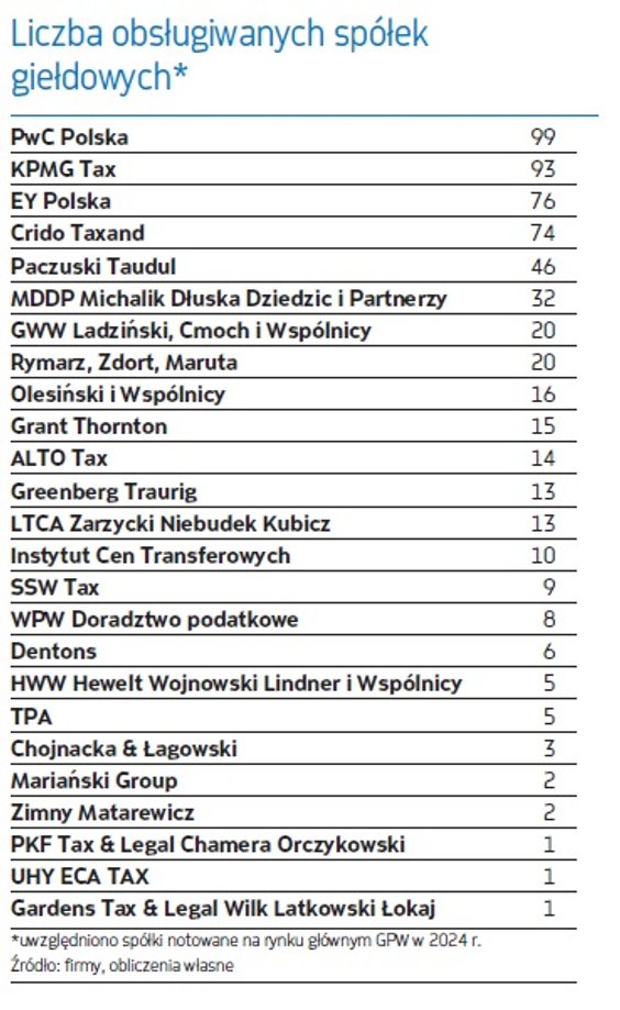 PwC utrzymało pozycję lidera. Doradzało 99 spółkom (wobec 103 w 2023 r.).
