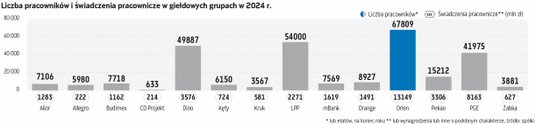 Wartość świadczeń pracowniczych przypadających na każdego zatrudnionego w spółkach notowanych na warszawskiej giełdzie i w tworzonych przez nie grupach kapitałowych jest mocno zróżnicowana. Podobnie sprawa ma się z efektywnością mierzoną chociażby przychodami i zyskami przypadającym na pojedynczego pracownika.