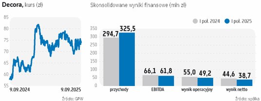 Niezależnie od tego, menedżerowie Decory zwracają uwagę na trudne warunki makroekonomiczne, w jakich działa grupa. Mówią m.in. o popycie konsumenckim w fazie odbudowy, nadal drogim finansowaniu gospodarstw domowych oraz o ostrożności konsumentów w podejmowaniu dużych decyzji zakupowych. Życia nie ułatwiają też wysokie ceny energii w Polsce. W tym przypadku spółka jednak konsekwentnie inwestuje w rozwiązania zwiększające efektywność energetyczną, w tym w instalacje fotowoltaiczne.
