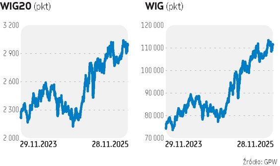 Piątkowa sesja na GPW może nie należała do najbardziej ekscytujących, ale był to dość istotny dzień, jeśli chodzi o dane makroekonomiczne. Jak podał z rana Główny Urząd Statystyczny, inflacja w Polsce w listopadzie wyniosła 2,4 proc. rok do roku, czyli – jak szeroko podkreślali analitycy – wreszcie poniżej celu Narodowego Banku Polskiego. Odczyt był też niższy od prognoz ekonomistów, którzy średnio spodziewali się 2,6-proc. dynamiki wzrostu cen, a nawet najbardziej optymistyczne założenie mówiło o 2,5-proc. inflacji. Zaskoczenie było więc mocno na plus i poniosło za sobą rewizję prognoz dotyczących kolejnych ruchów Rady Polityki Pieniężnej, która zbierze się w pierwszym tygodniu grudnia. Oczekiwania na cięcie stóp jeszcze w grudniu są już powszechne. Oznacza to także, że terminy kolejnych obniżek prawdopodobnie się skrócą i nastąpią już w pierwszych miesiącach przyszłego roku. Docelowy poziom stopy referencyjnej sięgnie zapewne 3,5 proc. wobec 4,25 proc. obecnie, choć część ekonomistów idzie jeszcze dalej.