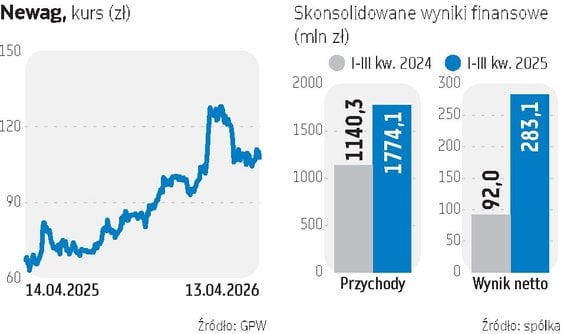 Według prezesa Newagu, grupa znajduje się obecnie w bardzo dobrej sytuacji, być może, że w najlepszej w swojej 150-letniej historii. Ubiegły rok był dla niej rekordowy pod względem przychodów, a zbudowany portfel zamówień ma gwarantować stabilność sprzedaży w najbliższych latach.