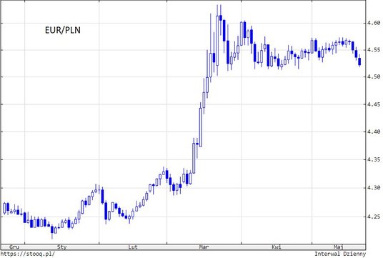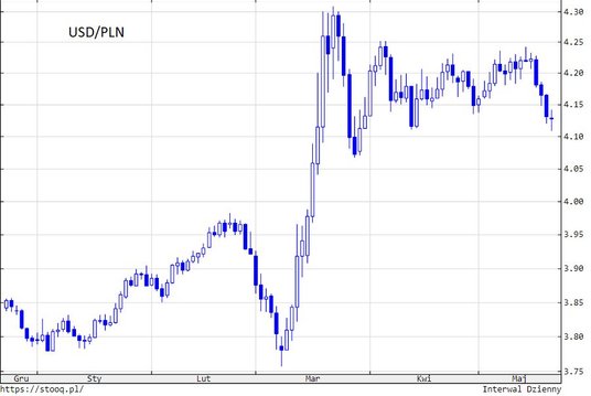 Dziś zostały opublikowane fatalne dane z krajowego rynku. Produkcja przemysłowa w kwietniu spadła rok do roku o niemal 25 proc., przy czym analitycy spodziewali się spadku średnio o 10 proc. Nie przełożyło się to jednak negatywnie na notowania waluty.