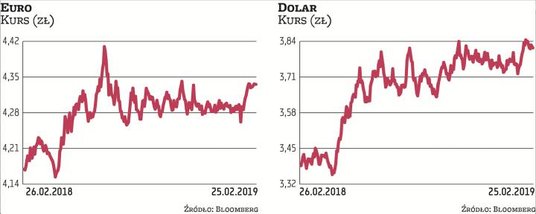Co ciekawe, nieco inaczej wygląda sytuacja na parze USD/PLN. W tym przypadku zachowanie naszej waluty jest uzależnione przede wszystkim od tego, co dzieje się na głównej parze walutowej, czyli EUR/USD. Od połowy lutego dolar zaczął osłabiać się wobec euro, co odbiło się także na jego notowaniach w relacji do złotego. USD/PLN z poziomu około 3,85 zjechała w okolice 3,81. Średnia prognoz ekspertów ankietowanych przez agencję Bloomberg mówi, że na koniec I kwartału USD/PLN będzie w okolicach 3,76. Jeśli zaś chodzi o parę EUR/PLN, tutaj prognozy mówią z kolei o poziomie 4,30.