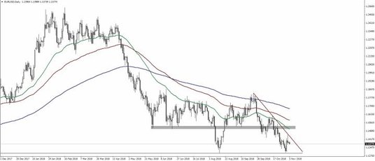 Zdaniem analityków z Goldman Sachs obrona poziomu 1,13 może zaś oznaczać rozpoczęcie kolejnej fali w korekcie rozpoczętej przy dołku z sierpnia. Może ona doprowadzić EUR/USD nawet do poziomu 1,1816. Zdaniem przedstawicieli banku dopiero w tym momencie warto będzie pomyśleć o krótkiej pozycji na głównej parze walutowej. Goldman Sachs spodziewa się nawet powrotu do trendu spadkowego. Zdaniem tej instytucji w ciągu roku ruch spadkowy może sprowadzić parę EUR/USD nawet w okolice 1,06. PRT