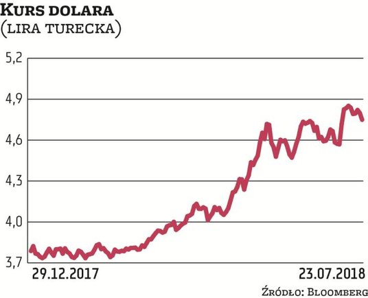 – Zmiany ustrojowe w Turcji nie pomagają tamtejszej walucie oraz giełdzie. Lira turecka systematycznie traci na wartości, a problem zaczyna się nasilać. Obecna wyprzedaż tureckiej waluty oraz spadki na giełdzie spowodowane są nadmierną inflacją oraz większymi obawami o niezależność banku centralnego w tym kraju, bowiem ostatnie zmiany ustawodawcze wprowadzone przez prezydenta Erdogana spowodowały, że sam prezydent może mianować prezesów oraz wiceprezesów banku centralnego – tłumaczy Mateusz Groszek, analityk Admiral Markets. – Odczyt inflacji CPI za czerwiec wyniósł 15,39 proc. r./r., natomiast poprzedni 12,15 proc. Turcja boryka się z dużą inflacją, a brak podwyżek stóp procentowych (obecnie znajdują się na poziomie 17,75 proc.) może doprowadzić do nasilenia się zjawiska inflacyjnego. Jej wzrost powyżej 20 proc. może być nie do opanowania, co doprowadzi do jeszcze większej wyprzedaży liry tureckiej oraz spadków na tamtejszej giełdzie – prognozuje Groszek.