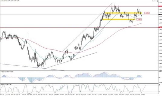 Żadna ze stron nie jest w stanie zdominować wydarzeń rynkowych, w związku z czym EUR/USD oscyluje obecnie przy poziomie 1,178. – Podaż przełamała wsparcie 1,1830, co wydłuża w czasie okres trendu bocznego. Piątkowy dołek z formacją świecową młota znajduje się w miejscu, gdzie 22 listopada rozpoczął się jeden z ostatnich impulsów wzrostowych. Dodatkowo, średnia krocząca MA50 po raz kolejny może wesprzeć tworzenie lokalnego wsparcia 1,1740 – uważa Paweł Śliwa, analityk DM mBanku.