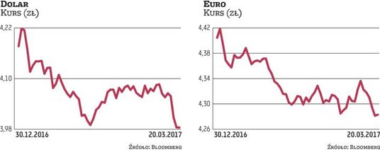 Również analitycy ankietowani przez agencję Bloomberg prognozują, że silny złoty to tylko chwilowa tendencja. Średnia ich prognoz mówi, że na koniec II kwartału za dolara trzeba będzie zapłacić 4,21 zł. Na koniec roku ma to być 4,10 zł. Prognozy dla euro mówią z kolei o poziomie 4,35 zł na koniec czerwca oraz 4,30 na koniec roku.