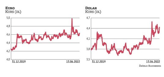 – Dolar od piątku ponownie jest walutą numer jeden. Rynek zaczyna spekulować, że Fed podniesie, na którymś z trzech najbliższych posiedzeń, stopę nawet o 75 pkt proc., a do końca września koszt pieniądza zostanie zwiększony aż o 175 pkt proc. To oczywiście efekt inflacji, która w USA wypadła w maju na poziomie 8,6 proc. (rynek zakładał, że szczyt inflacji mamy za sobą). Silna deprecjacja złotego, głównie względem USD, to efekt spadków EUR/USD. Główna para walutowa w poniedziałek około południa była już poniżej 1,0470. Wysoka inflacja rodzi obawy o stagflację, stąd też obserwujemy spadki na giełdach w Europie i USA. Klasycznie złoty nie radzi sobie w takim otoczeniu najlepiej. Podwyższona awersja do ryzyka powoduje, że kapitał raczej opuszcza złotego – mówi Łukasz Zembik.