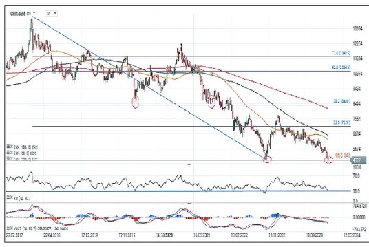 Cofnięcie indeksu Hang Seng China Enterprises nabiera szczególnego znaczenia z punktu widzenia analizy technicznej. – Patrząc na wykres tygodniowy, widzimy potencjalną formację podwójnego dołka, formującego się przy poziomie 5000 pkt. Podobną sytuację obserwowaliśmy przy poziomie 8500 pkt w latach 2019–2021. Wówczas, mimo początkowego odbicia od 8500 pkt, formacja została zanegowana i nastąpiła fala spadkowa. Gdyby sytuacja miała się powtórzyć, niewykluczony jest wzrost w okolice 6000 pkt. Jeśli impuls ten miałby zostać kolejny raz zgaszony, fala spadkowa potencjalnie mogłaby sprowadzić indeks nawet w okolice 2500 pkt – zwracają uwagę eksperci XTB. PRT