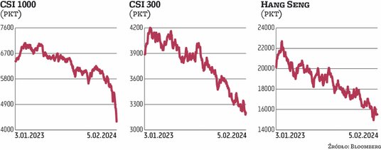 Obawy inwestorów dotyczące chińskiego wzrostu gospodarczego, kryzysu na rynku nieruchomości, polityki regulacyjnej oraz relacji Chin z USA przyczyniły się do tego, że w ostatnich kilkunastu miesiącach indeksy giełdowe z ChRL radziły sobie kiepsko. CSI 300 wrócił na podobny poziom do tego z lutego 2019 r. Shanghai Composite spadł od początku roku o prawie 9 proc. i znalazł się najniżej od marca 2020 r. MSCI China (indeks, w którym mocno są reprezentowane spółki technologiczne) spadł od początku stycznia o prawie 11 proc. i zbliżył się do dołka z października 2022 r. Do dołka z jesieni 2022 r. niewiele brakuje również indeksowi Hang Seng z giełdy w Hongkongu. Od początku stycznia spadł o prawie 8 proc.