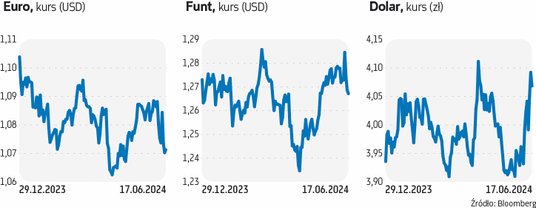 Złoty stracił od początku roku 3,2 proc. wobec dolara, a euro zniżkowało w tym czasie o 2,9 proc. wobec amerykańskiej waluty. Od 7 czerwca, czyli ostatniej sesji przed wyborami do Parlamentu Europejskiego, waluty straciły odpowiednio 1,9 proc. i 0,8 proc. wobec dolara. Choć wybory nie wywołały dużej zmiany układu sił w samym europarlamencie, to we Francji przyniosły zwycięstwo eurosceptycznemu Zgromadzeniu Narodowemu, kierowanemu przez Marine Le Pen, i sprowokowały prezydenta Emmanuela Macrona do ogłoszenia przedterminowych wyborów parlamentarnych. Związana z tym niepewność może w nadchodzących tygodniach poważnie ciążyć euro. (Podobnie wybory w Wielkiej Brytanii mogą ciążyć funtowi).