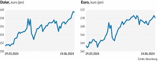 Jen znów ma problemy. Japońska waluta systematycznie słabnie w ostatnim czasie. W poniedziałek znów doszła ona do progu „bólu”. Para USD/JPY zbliżyła się do poziomu 160,0, by później wykonać krok wstecz. Jest on o tyle szczególny, gdyż to właśnie po przekroczeniu tej wartości w kwietniu doszło do interwencji walutowej ze strony japońskich władz. Dzięki nim notowania USD/JPY spadły w okolice 153,00.