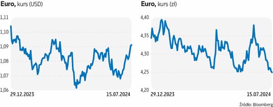 Z dużej chmury mały deszcz. Tak w dużym skrócie można opisać reakcję rynku walutowego na weekendowe wydarzenia w USA (nieudany zamach na Donalda Trumpa). Teoretycznie powinno to sprzyjać ucieczce kapitału w kierunku dolara. To z kolei oznaczałoby spadek pary EUR/USD. Euro jednak wyszło z tych opresji obroną ręką. To oznacza, że inwestorzy znów mogą spoglądać w stronę innych elementów rynkowej układanki. W tym tygodniu jest to chociażby posiedzenie Europejskiego Banku Centralnego. Ten, w odróżnieniu od Rezerwy Federalnej, dokonał już pierwszej obniżki stóp procentowych, co w teorii powinno się przekładać na słabość euro. Od pewnego czasu euro jednak zyskuje na wartości, a para EUR/USD, która jeszcze w czerwcu była poniżej poziomu 1,07, w poniedziałek znów była powyżej 1,09. Czy EBC może w tym tygodniu wprowadzić więcej zamieszania rynkowego?