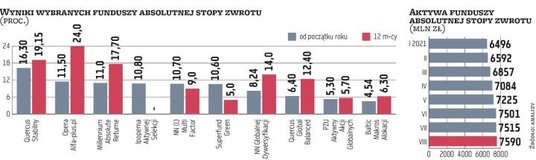 Fundusze absolutnej stopy zwrotu teoretycznie mają za zadanie radzić sobie w każdych warunkach rynkowych. Zwykle są to portfele akcji, a jako zabezpieczenie przed spadkami mogą stosować kontrakty terminowe. Kilka lat temu była to dość popularna grupa produktów, jednak sprawa GetBacku i problemy kilku TFI mocno odchudziły aktywa funduszy ASZ, a część tego typu funduszy zniknęła. Padł też wówczas mit zysków w każdych warunkach. W ostatnich miesiącach kilka produktów przyciąga jednak wpłaty, a większość nie ma się czego wstydzić, jeśli chodzi o wyniki. Co ważne, część z nich rzeczywiście wyróżnia się niską zmiennością wycen, a jednocześnie atrakcyjnymi stopami zwrotu, które w dłuższym okresie są dodatnie.