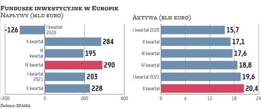 Około 430 mld euro netto zainwestowali Europejczycy w funduszach inwestycyjnych w ciągu pierwszych sześciu miesięcy tego roku – wynika z zestawienia EFAMA. Większość z tej kwoty trafiła do funduszy akcji. Inwestorzy lokowali kapitał także w funduszach mieszanych oraz obligacji. Pod kreską znalazły się za to fundusze rynku pieniężnego. Co ciekawe, po rekordowym