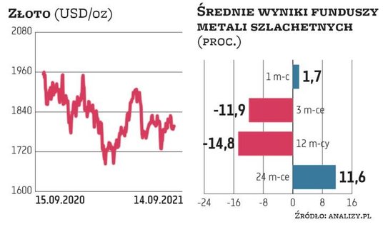 Złoto przez część uczestników rynku kojarzone jest jako sposób na ochronę przed inflacją, a zatem ten rok powinien sprzyjać inwestorom. Niestety, reguła ta nie sprawdza się, a cena kruszcu jest nawet niższa niż na przełomie lat. Straty części funduszy od początku tego roku są dwucyfrowe, a wynik PKO Akcji Rynku Złota – gwiazdy dwóch poprzednich lat – skurczył się do 2,5 proc. od początku 2020 r.