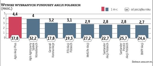 Przykładem jest Agio Akcji Plus, który w miesiąc zarobił blisko 4,4 proc. – WIG bije ostatnio rekordy wszech czasów sprzed prawie 15 lat. Przyczyny hossy są jednak diametralnie inne – ocenia Jakub Bentke, zarządzający AgioFunds TFI. – Wtedy mieliśmy rekordy na skutek masowych, spekulacyjnych zakupów funduszy i samych akcji. Wyceny, szczególnie najmniejszych spółek, były ekstremalne. Cena do wartości księgowej zbliżała się do prawie 4,5 dla sWIG80 – wspomina Bentke. – Teraz jest to trzy razy mniej. Wciąż jest dużo niedowartościowanych spółek z C/Z poniżej 10, rosnącymi zyskami, płacących wysokie dywidendy – analizuje. Jego zdaniem jesteśmy raczej w trakcie powrotu do normalności, po wieloletniej bessie i zapomnieniu. – Widać to w stopach zwrotu indeksów, gdzie największe spółki tracą do najmniejszych ponad 15 pkt proc. od początku roku. Często wykorzystują to zarządzający funduszami (podobnie jak my), robiąc zakłady na akcjach spoza WIG20 – przyznaje. Jak tłumaczy, innym, w miarę prostym zakładem było przeważanie się w akcje banków. – Wysokie stopy procentowe bardzo sprzyjają ich zyskom, w dodatku nie pojawiła się masowa fala pocovidowych bankructw. Przy publikacjach inflacji na poziomie 4–5 proc. pojawiły się oczekiwania na podwyżki stóp, przez co banki wydawały się być naturalną inwestycją – przypomina. Zdaniem Bentkego przyszłość rynku wygląda na razie dobrze. – W kraju postępuje przenoszenie oszczędności z funduszy obligacji do bardziej ryzykownych. Za granicą trwają nabycia funduszy rynków wschodzących. Gospodarka wraca szybko do normalności, a wyceny spółek są często nadal bardzo atrakcyjne – stwierdza.