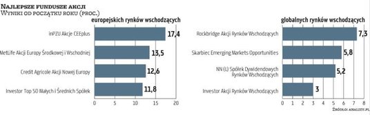 Ten rok jak dotąd bardzo sprzyja inwestycjom w akcje. Szukając jednak dziury w całym, w oczy rzucają się stopy zwrotu funduszy zarówno akcji, jak i obligacji rynków wschodzących. W przypadku bardziej ryzykownych portfeli wyniki często są skromne na tle pozostałych kategorii funduszy. Z kolei portfele dłużne najczęściej przyniosły nawet straty, licząc od początku roku.