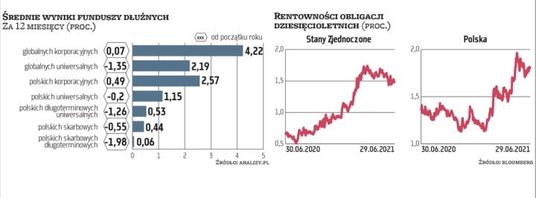 Jak tłumaczy Grzegorz Zatryb, dyrektor departamentu zarządzania, Skarbiec TFI, fundusze dłużne powinny stanowić tę część portfela, która jest odporna na dekoniunkturę na giełdach akcji. Oczywiście fundusze papierów skarbowych taką funkcję pełnią w większym stopniu, natomiast fundusze obligacji korporacyjnych mają wyższą korelację z rynkami akcji i w związku z tym gorzej nadają się do dywersyfikacji. – Rozważając to, czy kupować fundusze dłużne, musimy więc zdecydować, jaką funkcję pełnią w naszym portfelu. W czasach, gdy rynki funkcjonują w otoczeniu zerowych stóp procentowych, trudno oczekiwać od funduszy dłużnych takich stóp zwrotu jak niewiele ponad rok temu. Aby uzyskać jakiś sensowny zysk z funduszy dłużnych, trzeba podjąć wysokie ryzyko i wtedy nie będą to już fundusze „bezpieczne" – zauważa Zatryb. Jak dodaje, obligacje korporacyjne dają zarobić w takim samym otoczeniu jak akcje. – Warto więc zastanowić się nad funduszami akcji, jeżeli chcemy generować stopę zwrotu. Z kolei z punktu widzenia dywersyfikacji fundusze dłużne kupujemy dlatego, że w razie katastrofy na rynku akcji powinny ochronić kapitał, tak jak to się stało np. w roku 2020. Niestety, utrzymywanie takiego „bezpiecznika" w portfelu oznacza, że część naszego kapitału obecnie nie pracuje czy przynosi niewielkie straty – podkreśla ekspert Skarbca TFI. Jego zdaniem z tego punktu widzenia lepiej sprawdzą się fundusze obligacji skarbowych i to z rynków rozwiniętych.