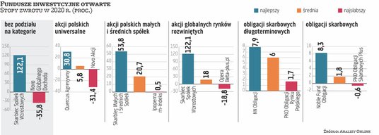 Wyniki funduszy inwestycyjnych za rok 2020 nie oddają emocji, jakich w ciągu poprzednich 12 miesięcy doświadczyli inwestorzy. Strach i panika, które zapanowały na rynkach w marcu, mieszały się z euforią i nadziejami rozbudzonymi dzięki pracom nad szczepionką przeciwko koronawirusowi. One z kolei wznosiły indeksy akcji na nowe szczyty.