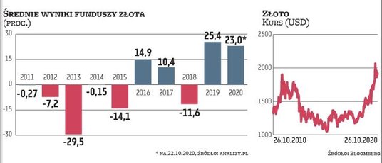 Krajowe fundusze surowców, w tym złota, mają bardzo różną charakterystykę. Dla przykładu powstały w połowie stycznia Generali Złota (opłata za zarządzanie również sięgająca 3 proc. aktywów rocznie) składał się w połowie roku w 71 proc. z tytułów uczestnictwa innych funduszy. Na czele pod względem udziału w portfelu znajdował się VanEck Vectors Gold Miners ETF, a więc popularny fundusz pasywny złota. Warto zauważyć, że nabywając taki produkt bezpośrednio, koszty dla uczestnika wynoszą jedynie 0,52 proc. rocznie (nie uwzględniając prowizji za zakup).