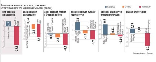 Wrzesień nie należał do udanych miesięcy dla uczestników funduszy akcji nastawionych na rynek polski. Większe szanse na zarobek mieli inwestujący w papiery udziałowe spółek z rynków rozwiniętych. Do dobrej formy wróciła większość funduszy dłużnych.