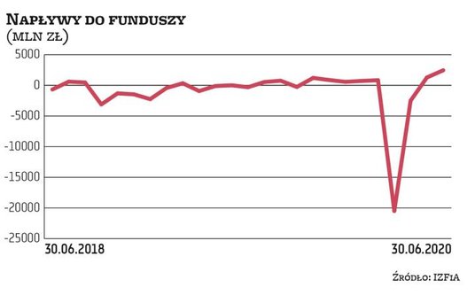 W czerwcu znów utrzymało się dodatnie saldo sprzedaży w funduszach akcji, jednak najwięcej nowych wpłat przyciągnęły fundusze dłużne. Według wstępnych danych IZFiA klienci wpłacili do takich produktów około 1,8 mld zł. Tylko jedna kategoria funduszy dłużnych była pod kreską i były to strategie oparte na papierach skarbowych krótkoterminowych. Do tego około 85 mln zł netto zyskały fundusze papierów korporacyjnych. Pozostałe kategorie funduszy dłużnych zyskały po około 0,5–0,9 mld zł. Wciąż utrzymuje się przewaga wpłat nad wypłatami wśród funduszy akcji. Łącznie trafiło tam około 0,24 mld zł (brakuje jeszcze danych od Skarbca TFI). Około połowy tych środków popłynęło do funduszy akcji polskich i zagranicznych, natomiast 81 mln zł klienci zainwestowali w indeksowych funduszach akcji. Wyraźna przewaga wpłat miała miejsce oczywiście wśród funduszy mieszanych i zbliżyła się do 0,5 mld zł. To m.in. efekt zasileń funduszy pracowniczych planów kapitałowych. Z funduszy absolutnej stopy zwrotu wycofano około 75 mln zł netto.