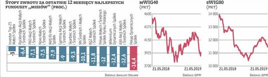 Dawid Frączek, zarządzający funduszami w Aviva Investors TFI, wspomina, że silne zwyżki indeksów sWIG80 i mWIG40 z początku roku były w dużym stopniu odreagowaniem spadków z 2018 r. (mWIG40 o 19,4 proc., a sWIG80 o 27,6 proc.). – Obecne cofnięcie indeksów może być związane z pojawiającymi się rozczarowującymi wynikami za 2018 r. i rewizją w dół prognoz na 2019 rok – mówi Frączek. Woźniak zgadza się, że ostatnia korekta sWIG80 i mWIG40 jest spowodowana właśnie czynnikami popytowo-podażowymi, jednak z wyjątkiem kilku przypadków jego zdaniem „misie" nie zawiodły wynikami za IV kw. ub.r. oraz I kw. 2019 r.