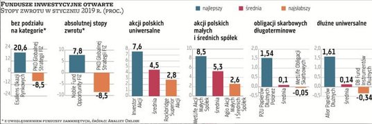 Sytuacja na rynkach niemal od początku roku układa się po myśli inwestorów. W styczniu giełdowe indeksy jakby zupełnie zapomniały o problemach, które dołowały je na jesieni zeszłego roku. Stąd i wyniki funduszy były rewelacyjne.