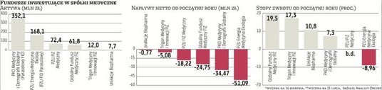Co ciekawe, niezłe wyniki funduszy medycznych wcale nie wiążą się z rosnącą popularnością tych produktów wśród klientów – wszystkie analizowane rozwiązania w tym roku mają więcej odpływów niż napływów. Największe zaś umorzenia notuje PZU Energia Medycyna Ekologia, który jest jednocześnie najsłabszy w tym roku pod względem wyniku. Jak mówi Sławomir Kościak, zarządzający TFI PZU, na wyniki funduszu PZU Energia Medycyna Ekologia wpływ miały decyzje inwestycyjne wobec spółek biotechnologicznych, notowanych na giełdzie w USA. – Dodatkowym utrudnieniem były wzmożone odpływy z tego funduszu, co wymuszało sprzedaż aktywów w czasie niesprzyjającej sytuacji rynkowej. Fundusz PZU EME wciąż pozostaje największym funduszem sektora medycznego w Polsce – przyznaje Kościak. TFI PZU zdecydowało o zmianach w strategii inwestycyjnej i nazwie funduszu oraz koncentracji na sektorze medycznym. PZU EME zrezygnuje też z inwestycji w inne sektory, np. ze spółek użyteczności publicznej. – Główną zmianą w nowej polityce inwestycyjnej jest wprowadzenie nowego benchmarku MSCI World Health Care. Obejmuje on największe spółki medyczne, zdywersyfikowane, zarówno geograficznie (spółki medyczne z całego świata), jak i według segmentów działalności (np. leki, biotechnologia, urządzenia medyczne, szpitale, ubezpieczyciele medyczni, usługi w zakresie opieki zdrowotnej etc.) – zapowiada Kościak. Zmiany wejdą w życie z początkiem października.
