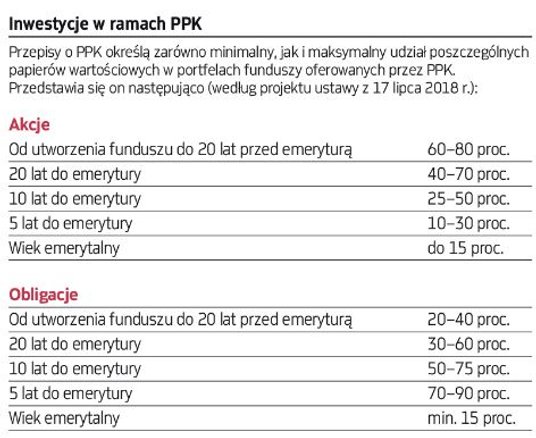 Pracownicy zarabiający powyżej 2,1 tys. zł mają wpłacać po 2 proc. wynagrodzenia z możliwym podwyższeniem tej stawki o drugie tyle. Uprzywilejowano natomiast osoby mniej zarabiające – będą wpłacać po 0,5 proc., mimo że wpłaty pracodawcy nie zostaną zmniejszone. Każdy będzie miał więc szanse oszczędzać, a jednocześnie mieć więcej pieniędzy na codzienne życie, nawet jak jego pensja nie jest za wysoka. Opłata za zarządzanie PPK też ma zachęcać – wynosi tylko 0,5 proc. zgromadzonych środków.
