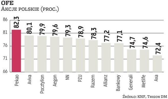 Alokacja OFE w polskie akcje wzrosła do 78,3 proc. i aż osiem z 11 funduszy posiada powyżej 75 proc.