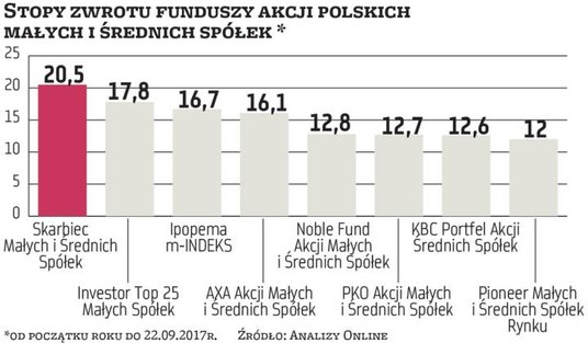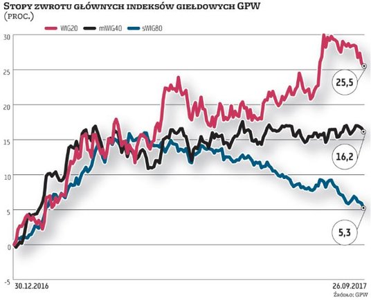 Akcje małych i średnich firm w ostatnich miesiącach radzą sobie zdecydowanie gorzej na tle spółek z WIG20. Te ostatnie mogą przynajmniej liczyć na popyt inwestorów zagranicznych, choć w ostatnich dniach i ten segment złapał zadyszkę. Taka sytuacja nie pozostaje bez wpływu na wyniki krajowych funduszy inwestycyjnych. W tym roku strategie oparte na inwestycjach w akcje małych i średnich firm okazują się znacznie mniej dochodowe niż funduszy uniwersalnych, które dają inwestorom ekspozycję na wszystkie segmenty warszawskiej giełdy.