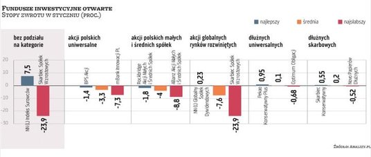 W przypadku obu wspomnianych grup funduszy słaby styczeń sprawił, że także wynik w okresie trzech miesięcy stał się ujemny.