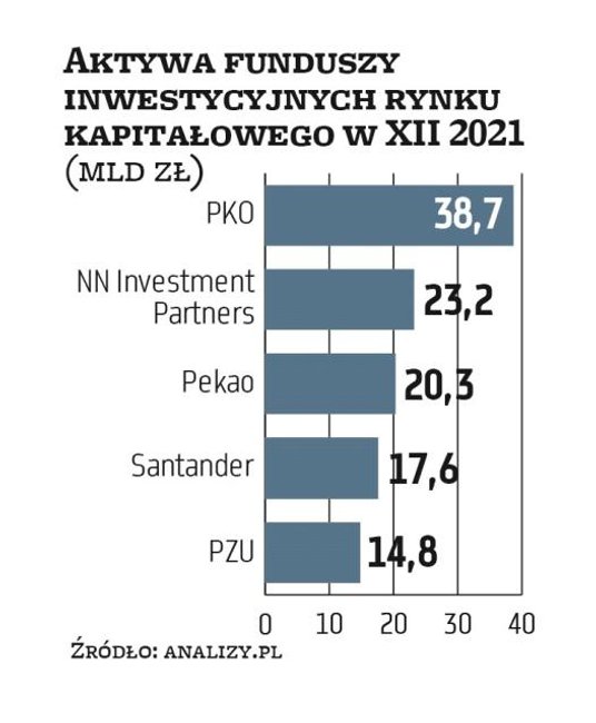 NN Investment Partners TFI w ubiegłym roku przyciągnęło około 2 mld zł nowego kapitału, co dało mu drugi wynik na rynku po PKO TFI (4,3 mld zł). Słabszy styczeń w wykonaniu tego TFI może wskazywać, że również cały rynek zakończył ten miesiąc pod kreską. Nie byłoby to niespodzianką, ponieważ w ostatnich miesiącach kapitał z funduszy inwestycyjnych zazwyczaj ucieka. Główną przyczyną są fatalne wyniki funduszy dłużnych, czyli jednocześnie największej pod względem aktywów grupy. Część produktów dłużnych w 2021 r. przyniosła uczestnikom dwucyfrowe straty.