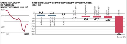 Na drugim miejscu pod względem skali odpływu znalazły się fundusze mieszane z przewagą umorzeń w wysokości 0,43 mld zł. Był to dla nich najsłabszy miesiąc od koronawirusowego krachu z marca 2020 r.