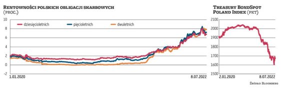 Recesja oznaczałaby pogorszenie fundamentów spółek, co zawsze spotykało się z przeceną akcji. Z drugiej strony dla mocno przecenionych obligacji może być to pozytywny czas, choć wcale nie musi oznaczać istotnych spadków rentowności. Jedno jest pewne – jesteśmy obecnie w trakcie jednego z największych kryzysów. Jak oszacował niedawno Jarosław Niedzielewski, dyrektor departamentu inwestycji w Investors TFI, równie głębokie spadki jak obecnie, trwające niespełna pół roku i obejmujące co najmniej dziesięć sektorów zdarzały się jedynie w trakcie prawdziwych rynków niedźwiedzia w latach 2000–2002 i latach 2007–2009. Z drugiej strony, najświeższe dane z amerykańskiego rynku pracy są dobre. W czerwcu przybyło 372 tys. etatów, stopa bezrobocia utrzymała się na minimach, a płace rosły. – Recesja po drugiej stronie Atlantyku odroczona, rynek może śmiało wyceniać więcej podwyżek stóp – komentowali analitycy. Ale to wcale nie musi być dobra informacja dla akcji, gdyż inwestorzy mogli liczyć jednak na ograniczenie harmonogramu zacieśniania monetarnego w USA. Na razie rynek spodziewa się podwyżki o 75 pkt baz. w lipcu. Z kolei EBC najprawdopodobniej podwyższy stopy we wrześniu.