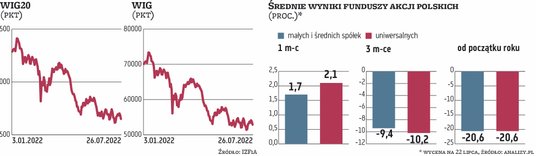 Zarządzający mają oczywiście różne pomysły na swoje fundusze, a różnice wyników w grupach polskich akcji są spore. Wśród produktów opartych na akcjach małych i średnich spółek licząc od początku roku najsłabszy produkt od najlepszego dzieli aż 18 pkt proc., a w uniwersalnych jest to blisko 16 pkt proc. Średnie wyniki w obu grupach są jednak bardzo podobne (straty po nieco ponad 20 proc.) i zbliżone do dorobku WIG.