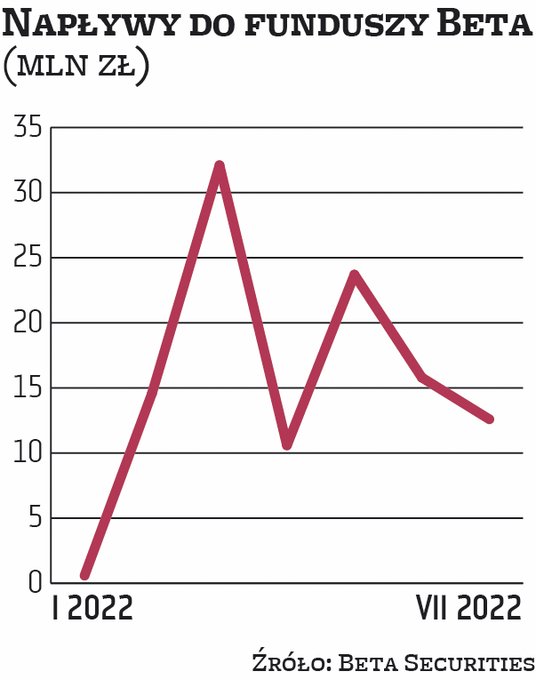 Jak podała Beta Securities, od początku roku wpłaty netto do funduszy uruchomionych przy współpracy z AgioFunds TFI sięgnęły 112 mln zł. Co ciekawe, w samym lipcu największym zainteresowaniem cieszył się ETF na indeks obligacji TBSP, do którego popłynęło 6,56 mln zł, czyli około połowy łącznych wpłat do funduszy z rodziny Beta ETF. Fundusz ten w zeszłym miesiącu wypracował aż 5,3-proc. stopę zwrotu w związku z gwałtownie zniżkującymi rentownościami (rosnącymi cenami) polskich papierów skarbowych. Sierpień jak na razie przynosi stabilizację rentowności polskich obligacji. We wtorek dochodowość papierów dziesięcioletnich sięgała 5,54 proc., czyli bez zmian w porównaniu z zamknięciem w lipcu. Treasury BondSpot Poland Index odrobił tegoroczną stratę do jedynie 4,4 proc.paan