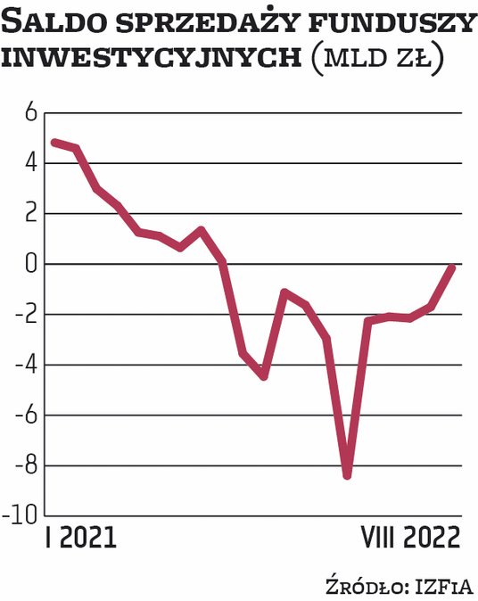 Z funduszy akcji wycofano zaledwie 50 mln zł, czyli niemal sześciokrotnie mniej niż w poprzednich miesiącach. Z funduszy mieszanych wypłacono 61 mln zł netto, czyli był to wynik o blisko 200 mln zł lepszy niż w lipcu. Z produktów inwestujących w rynek surowców odpływy były niemal dziesięciokrotnie niższe i sięgnęły 47 mln zł. Niższe umorzenia dotknęły także funduszy absolutnej stopy zwrotu – wypłacono z nich 45 mln zł netto, podczas gdy w lipcu przewaga umorzeń sięgnęła 104 mln zł.