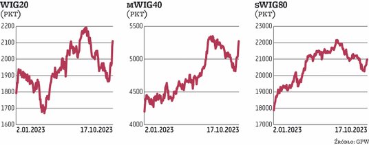 Po wyjątkowo silnych zwyżkach w poniedziałek również wtorek był udanym dniem dla inwestorów. Znów zyskiwały akcje i waluta. Układ w WIG20 był już nieco inny – WIG-banki po 10-proc. umocnieniu pierwszego dnia tygodnia był stabilny, natomiast na czele indeksu dużych spółek plasowało się PGE. Sam WIG20 w ciągu dnia zyskiwał, dochodząc nawet do 2150 pkt, tj. miejsca, w którym poprzednio był na początku sierpnia. W dwa dni WIG20 wzbił się o 7 proc. Czy wraz z nowym układem sił na scenie politycznej nastawienie inwestorów do spółek z udziałem Skarbu Państwa, które są dużą częścią WIG20, może się trwale zmienić?