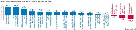 W ostatnim czasie krajowi inwestorzy okazują się jednak coraz bardziej otwarci na ryzyko. W październiku saldo sprzedaży funduszy akcji było najwyższe od około dwóch lat, a główny strumień kapitału popłynął do funduszy akcji polskich spółek. Fundusze te nieźle zarabiają już od około roku, ale jak dotąd zainteresowanie nimi było minimalne. Na razie pozytywne trendy z października się utrzymują.