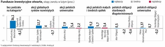 W styczniu polskie akcje zrobiły sobie krótką przerwę w zwyżkach, ale w lutym zachowanie głównych indeksów GPW znów przypominało to, co działo się w ostatnim kwartale zeszłego roku. Dzięki temu fundusze polskich akcji ponownie zagościły na czołowych miejscach tabeli wyników miesięcznych. Słabiej jednak zaprezentowały się fundusze obligacji długoterminowych, na których odbiły się zwyżki rentowności (spadki cen) papierów skarbowych.