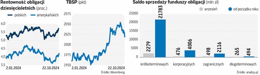 II półrocze będzie okresem obligacji długoterminowych – wybrzmiało niemal zgodnie z półrocznych prognoz zarządzających funduszami i analityków. I rzeczywiście, wydawało się, że wakacyjne tąpnięcie rynków akcji i zarazem gwałtowne umocnienie obligacji pod wpływem obaw o amerykański rynek pracy dość szybko tę prognozę zrealizowało, ale od połowy września rynki długu w USA i w Polsce słabną. Oprocentowanie amerykańskich papierów dziesięcioletnich we wtorek sięgało 4,2 proc., czyli poziomów sprzed lipcowego „wodospadu”, a to oczywiście oznacza też poziom o 23 pkt baz. wyższy od zamknięcia 2023 r. Oprocentowanie polskich papierów skarbowych zaś we wtorek docierało nawet do 5,77 proc., co oznacza, że do tegorocznych szczytów brakowało ledwie 10 pkt baz. To wszystko po długo wyczekiwanej obniżce stóp procentowych w USA aż o 50 pkt baz.