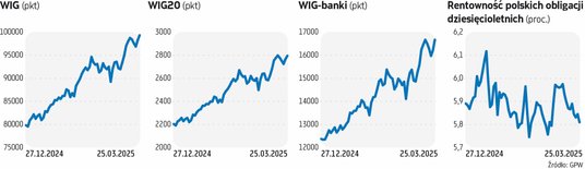 Najświeższe dane o sprzedaży detalicznej nie nastrajają optymizmem w stosunku do spółek handlowych i było to widać podczas wtorkowej sesji, w której ta grupa firm dołowała mimo wszystko rosnące główne indeksy. Polską giełdę nadal napędzają banki. Indeks tej grupy firm pozostaje blisko ustanowionego przed tygodniem rekordu, a to oznacza zachowanie 35-proc. zwyżki od początku roku. Tymczasem czynniki fundamentalne, czyli głównie stopy procentowe, w tym roku mogą się istotnie zmienić, ale nie budzi to większego niepokoju zarządzających. Stopy procentowe mają spadać, ale w środowisku dość dynamicznie rosnącej gospodarki. Tak silne zwyżki kursów banków w ledwie niecałe trzy miesiące mogą jednak wprawiać w osłupienie.