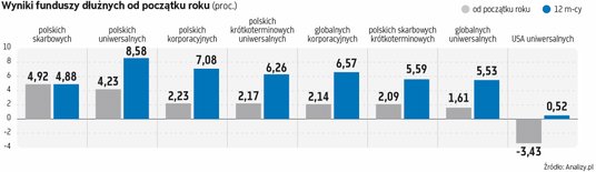 W tym roku inwestycje w obligacje amerykańskie wyszły funduszom w kratkę, co w niektórych przypadkach można tłumaczyć słabym zachowaniem dolara. O ryzyku walutowym – jeśli występuje – należy pamiętać, choć w dłuższym, kilkuletnim horyzoncie wpływ zmian kursów walut raczej jest mało zauważalny. Co do samego aktywa bazowego, czyli obligacji amerykańskich, zarządzający mają różną opinię. I nic dziwnego, bo sporo zależy tu od zapowiedzi Donalda Trumpa, które nieraz bywają impulsywne. Amerykańskie obligacje jednak do niedawna miały status bezpiecznej przystani. Na jak długo go utraciły? – Podtrzymujemy opinię, iż inwestorzy na rynku amerykańskich obligacji skarbowych powinni skupić się na krótko- i średnioterminowych papierach, które naszym zdaniem na obecną chwilę oferują najlepszy potencjał dla stóp zwrotu ważonych ryzykiem – mówi Łukasz Łabędzki, starszy analityk w Franklin Templeton Institute. Jak dodaje, istnieje wiele nierozwiązanych kwestii, które oddziałują na atrakcyjność długoterminowego długu w portfelu, m.in. zmienność oczekiwań inflacyjnych, obawy o przyszły popyt ze strony inwestorów zagranicznych czy wciąż rosnący deficyt budżetowy.