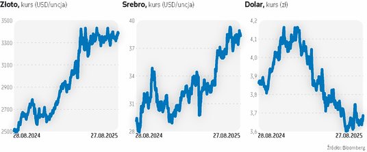 Jak wskazuje Daniel Kostecki z CMC Markets, złoto od tygodni pozostaje w konsolidacji pomiędzy 3260 USD a 3440 USD. – Co istotne, konsolidacja ta nie przekształciła się dotąd w głębszą korektę po rekordowym rajdzie, co może świadczyć o utrzymującej się sile rynku. Niemniej jednak, aby złoto mogło wyjść z trendu bocznego i rozpocząć kolejny ruch kierunkowy, potrzebny jest nowy impuls – twierdzi. Jego zdaniem za taki bodziec może posłużyć oczekiwany przez rynek spadek stóp procentowych w USA oraz obniżenie rentowności obligacji 10- i 30-letnich, czego domagają się m.in. Donald Trump i Scott Bessent. – Realizacja tego scenariusza – zwłaszcza spadek realnych stóp (obniżka stóp Fedu przy jednoczesnym odbiciu inflacji, np. wskutek ceł) – może wygenerować kolejny impuls wzrostowy dla rynku złota – przewiduje. Jak jednak zaznacza, rynek nie wycenia obecnie spektakularnych ruchów.