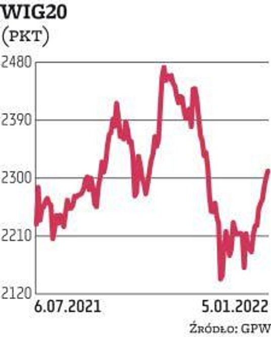 WIG20 po niecałej godzinie zniżkował o około 0,4 proc. Taki wynik plasował go na końcu tabeli europejskich giełd. Zniżka indeksu dużych spółek wiązała się ze słabszym zachowaniem banków. Przypomnijmy, że dla tych spółek kluczowym wydarzeniem w tym tygodniu była wtorkowa podwyżka stóp procentowych przez RPP. Z czasem jednak banki zaczęły poprawiać notowania. Coraz lepiej prezentowało się także czoło, któremu przewodniczył wracający powyżej 100 zł Mercator. Mocne były też przedsiębiorstwa powiązane z surowcami, czyli JSW, PKN Orlen czy Lotos. Do tego nad poziom 200 zł wskoczył ponownie CD Projekt. Popyt zaczął przeważać także na innych giełdach w Europie. Na lidera zaczął wyrastać DAX ze zwyżką o 0,7 proc. W drugiej części sesji WIG20 balansował wokół punktu odniesienia, jednak końcówka należała do popytu. Ostatecznie przedostatnią w tym tygodniu sesję indeks krajowych blue chips zakończył na poziomie blisko 2311 pkt, co oznaczało wzrost o 0,45 proc. Jak na razie wszystkie sesje w tym roku zakończyły się zwyżkami WIG20. Dodajmy, że indeks wraca do poziomów z połowy listopada, który był bardzo kiepski na GPW.
